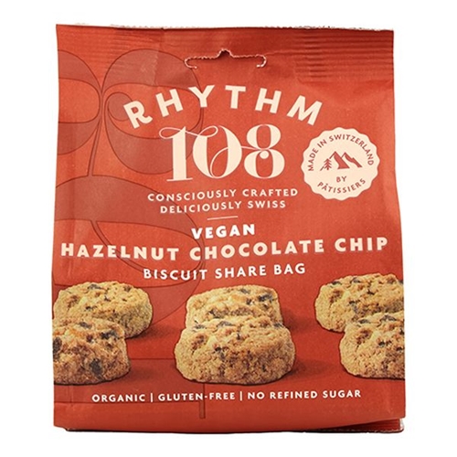 Rhythm 108 Swiss Vegan Hazelnut Chocolate Chip Share Bag 135g [Pack of 8]