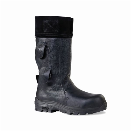 The Rock Fall Vulcan high leg foundry safety boots with protective toe cap and midsole. The Vulcan foundry boots developed with specialist durability materials including FORCE10 components. Certified to withstand molten splashes as high as 1400 degrees C. With flame retardant full grain leather and R-TEN flame resistant thread stitching. Includes an Activ-Step foam footbed, made with GRS recycled materials. Standard EN ISO 20349-1:2017 and A1:2020 S3 HI CI HRO SRC Fe.