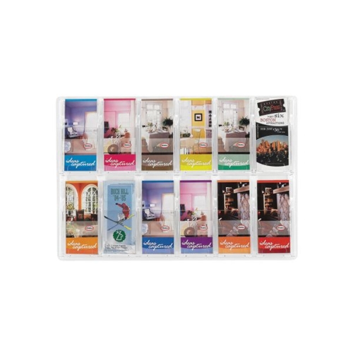 The Safco Clear Pamphlet Display Rack allows you to store your pamphlets in a clear and clean manner, with plastic pockets that ensure that your pamphlets retain their high quality and are protected from damage and dirt. With 12 individual DL sized pockets, this product has ample room for ensuring that you can store a full range of documents.