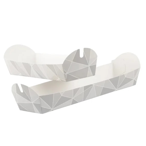 Introduce stylish and practical takeaway packaging to your services with the Sephra waffle trays. The robust cardboard packaging is crafted to elevate your desserts topped with sauces, syrups and toppings. Designed with towering sides, these trays provide a secure barrier against spills, ensuring every customer's sweet treats are enjoyed without a drop wasted.