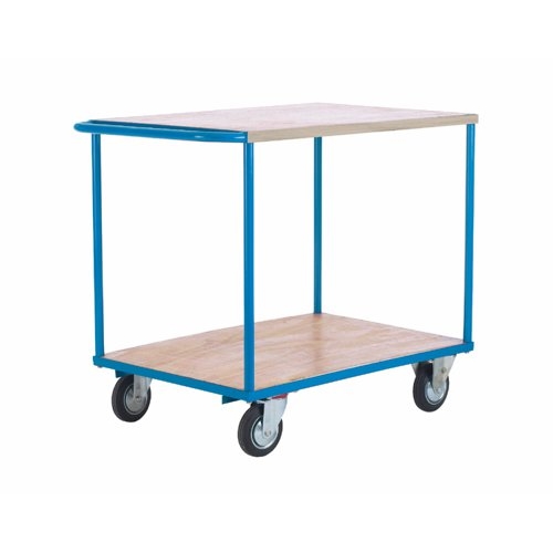 Shelf Truck; 2 Shelf with Push Handle; Fixed/Swivel (x2 Braked) Castors; Steel; 500kg; Blue/Veneer