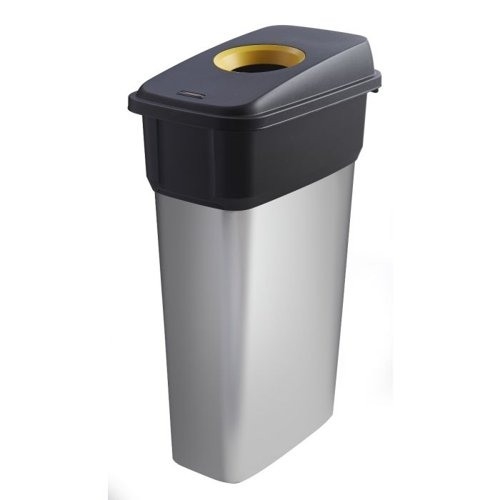 Slim Bin c/w Sticker; Hole Lid; 55L; Silver Body; Black/Yellow Lid; Metal Look Plastic