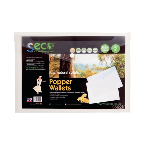 This wallet uses oxo biodegradable plastic which rapidly degrade when discarded or left in direct sunlight. Heavy duty A4 plastic provides prtection for your documents with the knowledge that you are helping the environment. Supplied in a pack of 5 clear wallets.