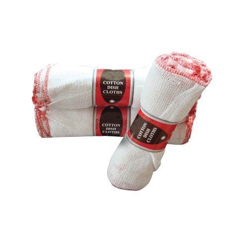 Stockinette dish cloths. 305x305mm with a red trim Pk10.