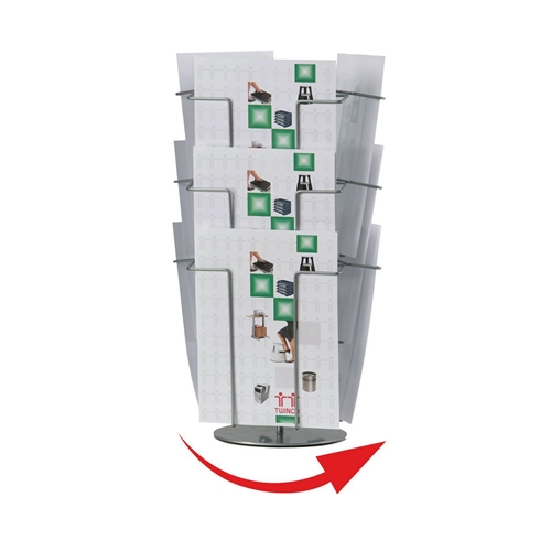 Perfect for use on reception desks, tills and desks, this Twinco Table Stand has a revolving design with 9 compartments for displaying leaflets, brochures and magazines in easy view of the customer.