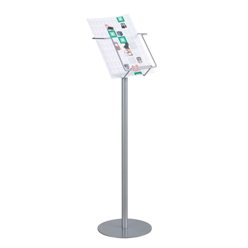 This Twinco Newspaper Stand features a wire holder that can display stacks of newspapers, magazines or brochures. Its simple self-standing design makes it ideal for placing in entranceways or by reception desks.