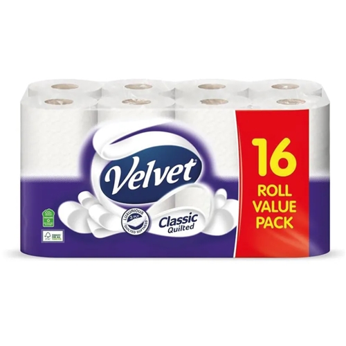 Velvet Classic Quilted Toilet Roll 3 Ply (Pack of 16)