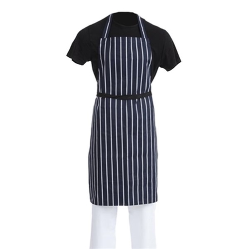 Ensure your clothes stay safeguarded from splashes and spills at all times, thanks to this high quality Whites blue stripe unisex butcher's apron. Boasting an outstanding 965mm length, the butcher's apron offers tremendous protection when cooking and preparing ingredients, helping to keep your chef's whites hygienic and in impeccable condition all day long. Made from high quality polycotton, the cooking apron is also incredibly hardwearing and easy to clean, ensuring a long-lasting life in any busy commercial catering environment. Completed with long ties, the striped apron can be effortlessly adjusted to fit your staff, helping them attain a more comfortable and secure fit.