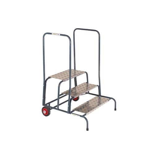 Wide Work Steps - 250mm Platform - 4 Tread - Chequer Plate Tread - with 2 Handrail - with Wheels