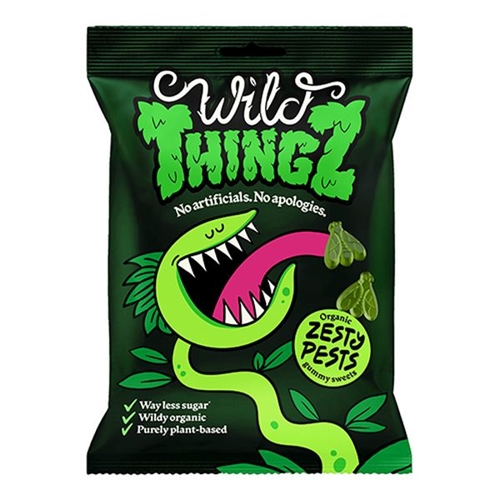 Wild Thingz organic, plant-based gummy sweets. Half the sugar of the big brands. No artificials. No apologies.Our Zesty Pests contain a creepy-crawly mix of Green Apple flavoured Flies, Cherry flavoured Spiders, Lemon flavoured Maggots and Green Apple flavoured Vee the Venus Fly Trap.No artificial colours, flavours or preservatives. We use pectin’s from fruits to give them their soft jelly consistency (never gelatine).It's wild that sweets are so artificial. We're not gonna stand by sweetly. Less junk. More punk. Welcome to Wild Thingz. Join the wild side…. follow us at @wildthingz.co or look us up www.wildthingz.co"