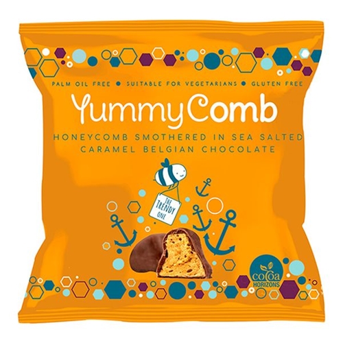 Bits size honeycomb nuggets smothered in Salted Caramel Belgian Milk Chocolate. Gluten Free, suitable for Vegetarians, Zero palm oil, 100% Natural flavours.