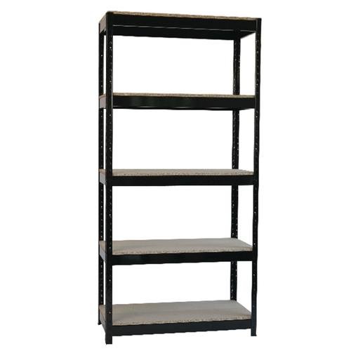 Medium Duty Boltless Frame Shelving with 5 height adjustable particle board shelves. Steel framed shelving with simple boltless construction. Each shelf accepts 80kg in weight. Dimensions - W850xD350xH1660mm. Non-returnable.
